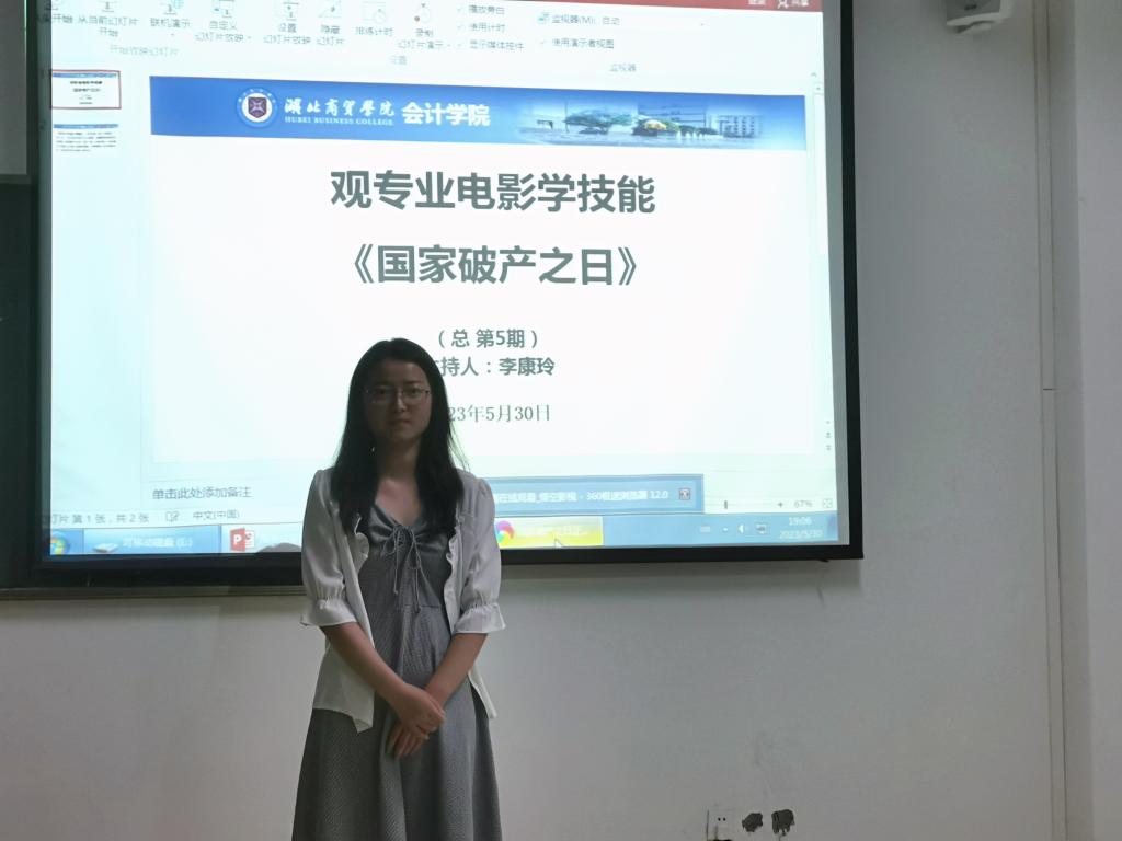 5月30日晚上18:30,环球360官网李康玲老师带领学生在咸宁校区B110教室开展第五期“观专业电影,学职业技能”课外教学活动,组织同学们观看《国家破产之日》。
